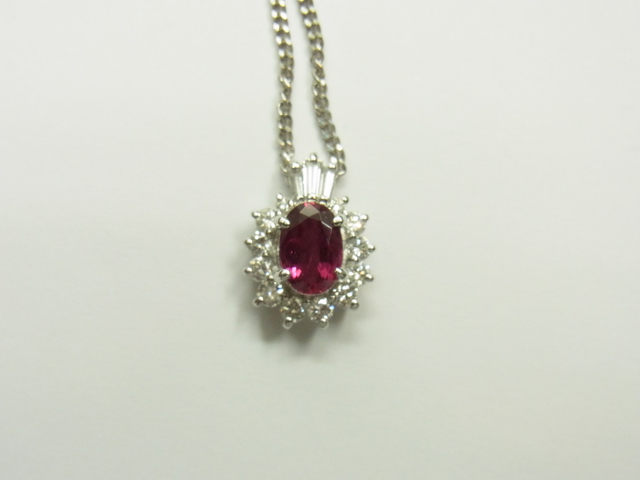 商品はルビーのプラチナネックレスです。