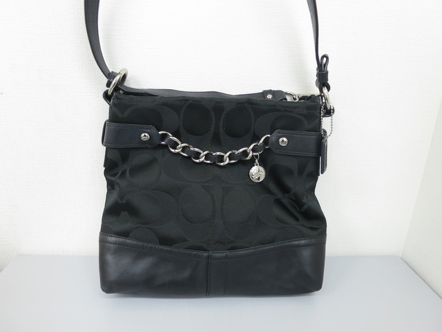 お持ち込みのお品はコーチ シグネチャー サテンダッフル ショルダー 黒