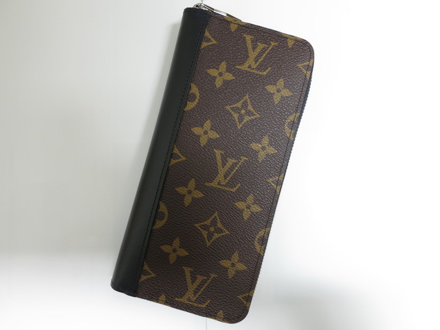 モノグラムキャンバス×ブラックレザーの組み合わせがマニッシュな印象の「モノグラム・マカサー」のジッピーウォレット・ヴェルティカル買取です。