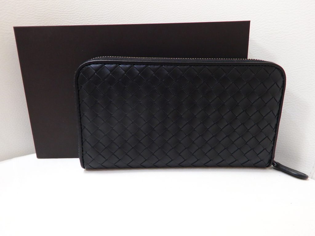 ボッテガ・ヴェネタ定番のイントレチャート(イタリア語で編み込みレザー)のラウンドファスナー式の財布を買い取りさせて頂きました。