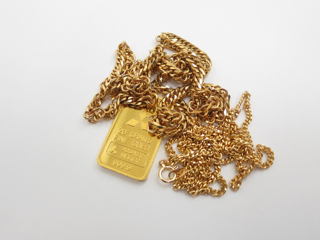 お持ち込みのお品は、『K24インゴットプレート・K18喜平ネックレス 計60.3g』