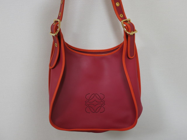 今回買取させて頂いたロエベの「ソフィア ショルダーバッグ」は、本体にファスナー、背面にポケットの付く便利な造りで、赤とオレンジの組み合わせがちょっと奇抜で可愛い感じのお品です。