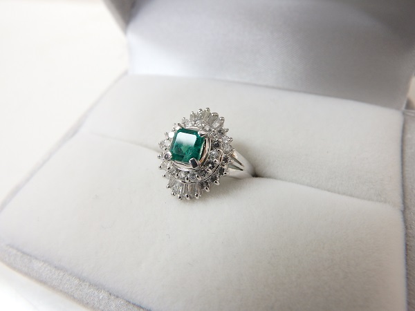 プラチナ製エメラルド0.65ct・ダイヤモンドリング0.72ctの高価買取はブランドラボへ