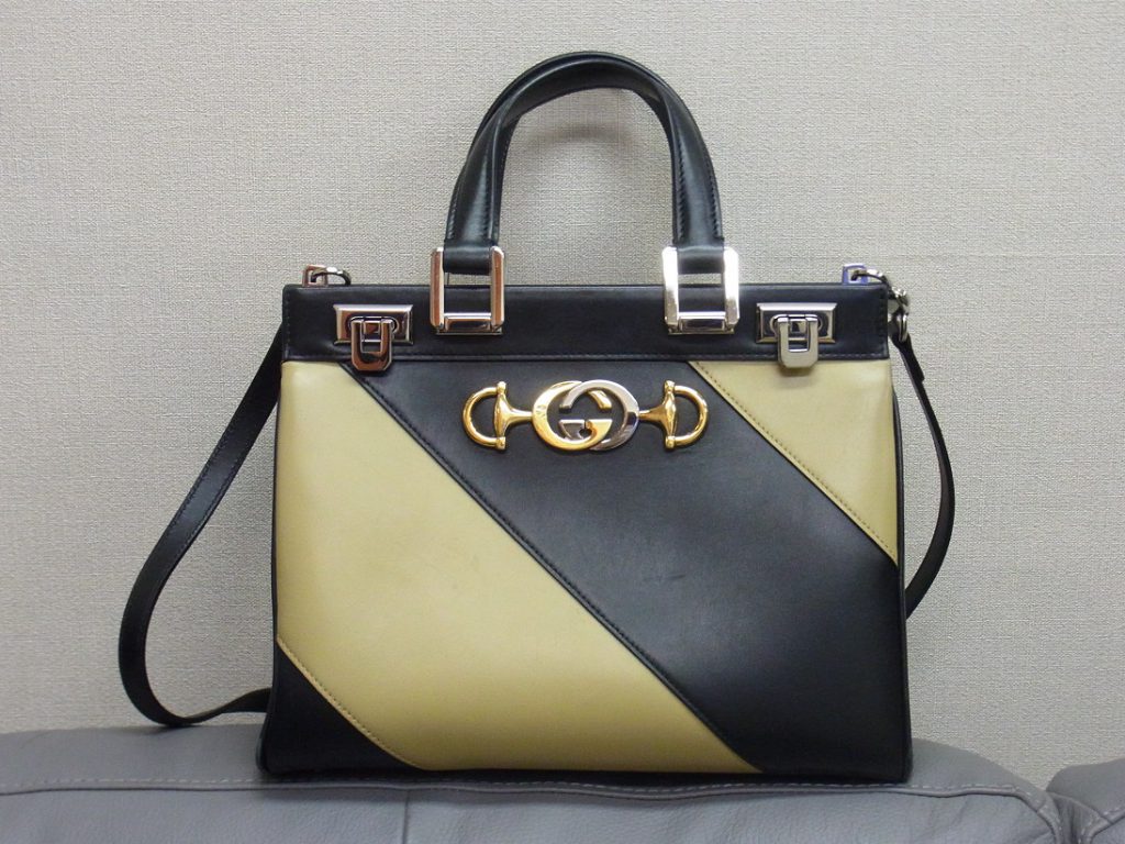 ブランドを象徴する2つのモチーフ、「インターロッキングG」と「ホースビット」が組み合わさった、シルバーとゴールドの2トーンで仕上げられたハードウェア(金具)が特徴の、グッチの「ズゥミ」ラインのバッグを買取いたしました。