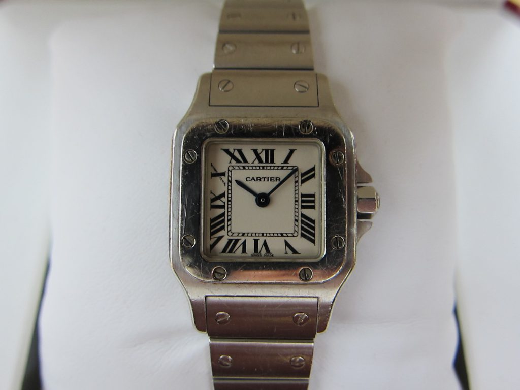 カルティエ サントスガルベSM W20056D6は20年前に購入されたそうです、お気に入りのだったので毎日使われていたそうです、風防ガラスの欠けなどはありませんが、ベゼルに擦れたような小傷が多く使用感はある状態でした。