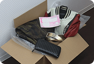 査定・買取のご希望の品物と、必要書類を入れて、同封されていた着払い伝票を使い発送してください。